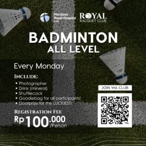 Makanan & MinumanLihat EventLihat Medical CheckupLihat Paket DiskonLihat Makanan & MinumanBooking KonsultasiToko KesehatanMakanan SehatLab & RadiologiMakananBooking Promo pilihan untukmu Telusuri Subkategori Kelas Kesehatan Pelatihan Seminar & Workshop Produk Terbaru Dilayani Care Dokter (Sample) Internal Workshop Rp 0 Tangerang Care Dokter 0.0 53Terjual Dilayani Care Dokter Senam Hamil Rp 50.000 Kota Tangerang Event by Mandaya Royal Hospital Puri 0.0 162Terjual Dilayani Care Dokter Kelas Laktasi Rp 150.000 Kota Tangerang Event by Mandaya Royal Hospital Puri 0.0 31Terjual Dilayani Care Dokter Royal Racquet Club - Badminton Rp 75.000 Kota Tangerang Event by Mandaya Royal Hospital Puri 0.0 8Terjual Dilayani Care Dokter Royal Racquet Club - Padel Rp 175.000 Kota Tangerang Event by Mandaya Royal Hospital Puri 0.0 4Terjual Dilayani Care Dokter Senior Yoga Rp 125.000 Kota Tangerang Event by Mandaya Royal Hospital Puri 0.0 0Terjual Dilayani Care Dokter Tidak tersedia Mindfulness & Healing Mediation Session Rp 0 Kota Tangerang Event by Mandaya Royal Hospital Puri 0.0 40Terjual Dilayani Care Dokter Tidak tersedia Nonton Bareng Rp 0 Kota Tangerang Event by Mandaya Royal Hospital Puri 0.0 0Terjual